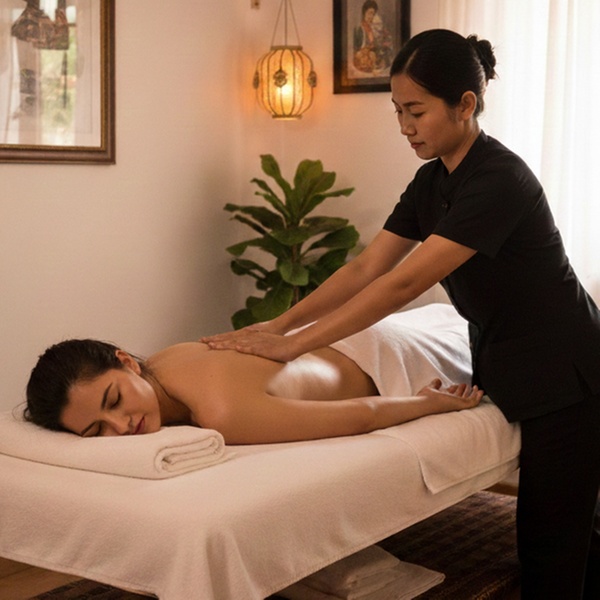Profitez d’un massage thaïlandais traditionnel authentique, réalisé par une praticienne experte au sein d’un salon chaleureux où tradition, technicité et relaxation profonde se rencontrent.