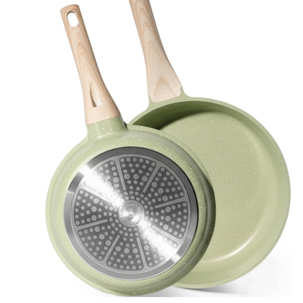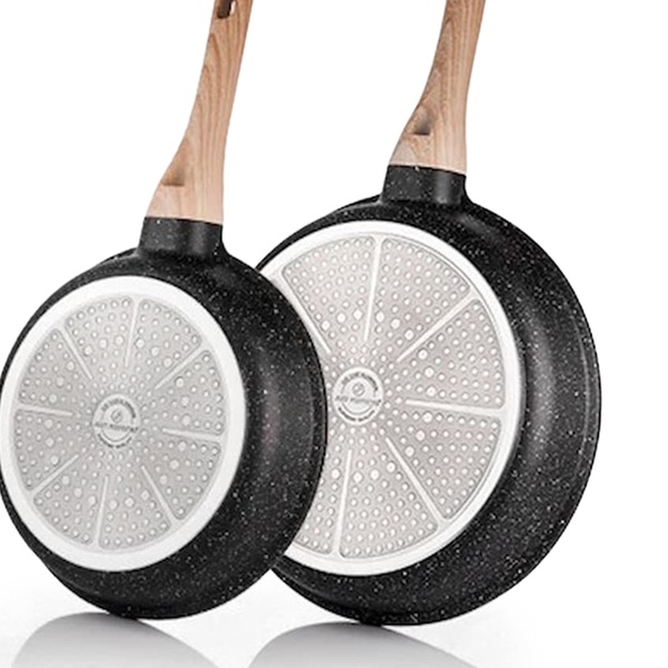 • construction à cinq couches : incluant un noyau en aluminium pour une répartition uniforme de la chaleur et des couches de revêtement en marbre pour des performances antiadhésives améliorées.