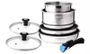 - Comprend 3 poêles de 20, 24 et 26 cm de diamètre, 2 casseroles de 16 et 20 cm de diamètre, 2 couvercles en verre de 20 et 26 cm, et 1 poignée amovible