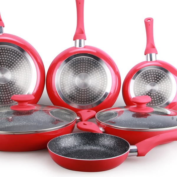 Ces batteries de cuisine Cenocco avec revêtement en pierre, compatibles tous feux, permettront une cuisson saine et sans matière grasse