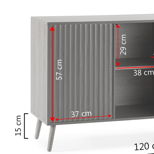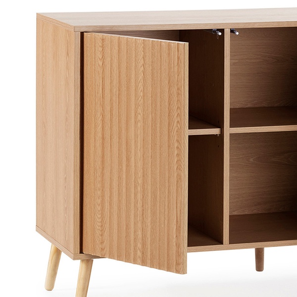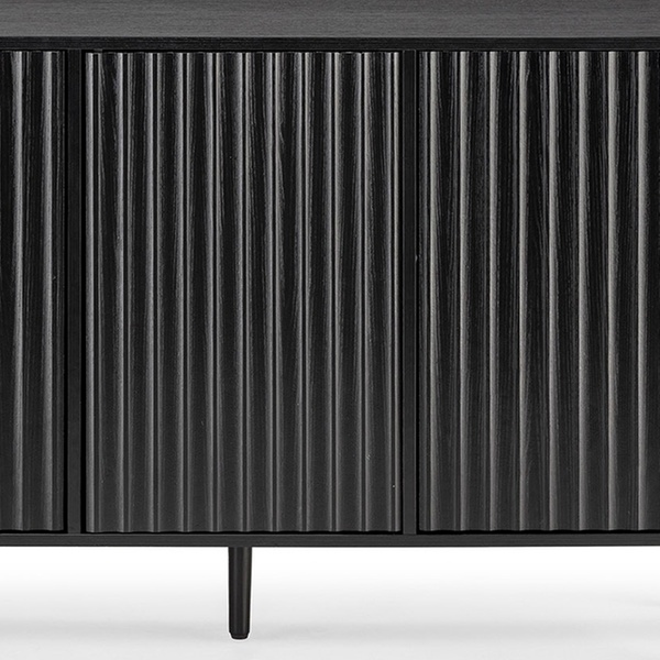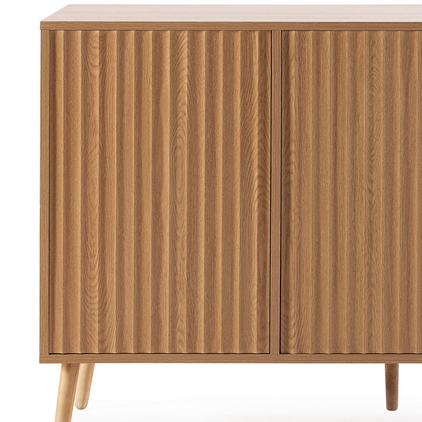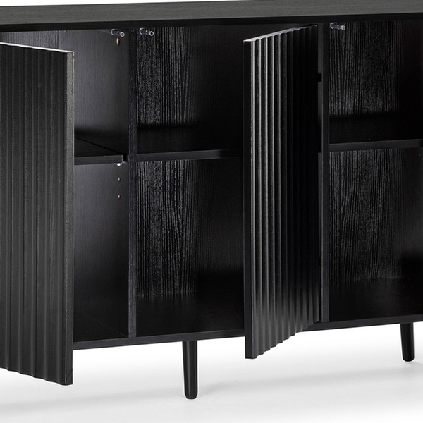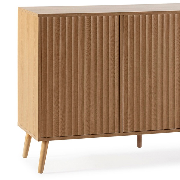 Le buffet Lluvia est un meuble minimaliste et moderne avec une finition effet scié (chêne, noir ou noyer) qui suit les tendances actuelles de l'aménagement intérieur.