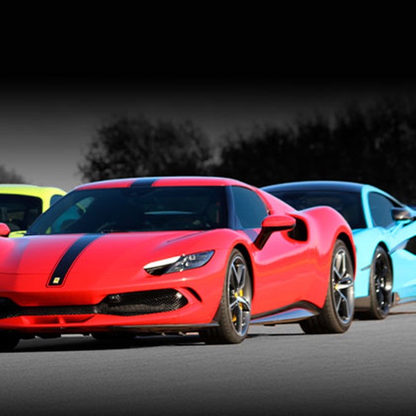Lamborghini Huracan (*) – 610 ch, Ferrari 488 GTB (*) – 670 ch, McLaren 600LT – 600 ch