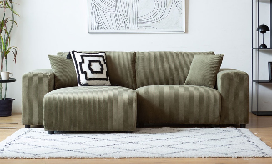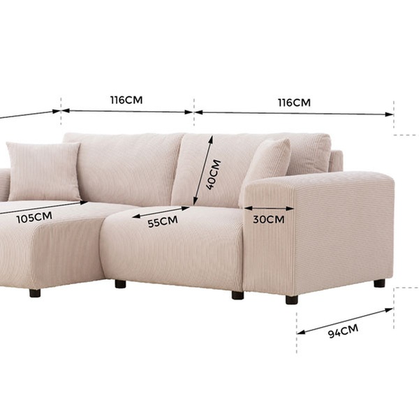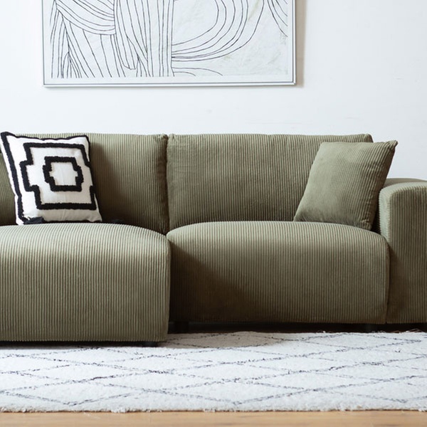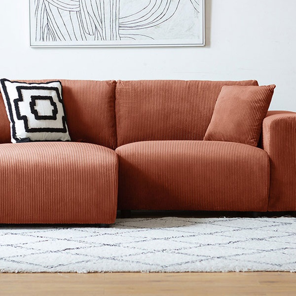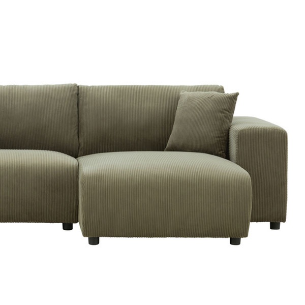 Alliez design contemporain et flexibilité avec ce canapé d'angle réversible. Son revêtement en velours côtelé doux et sa conception modulaire en font l'élément central adéquat pour un salon chaleureux et tendance.