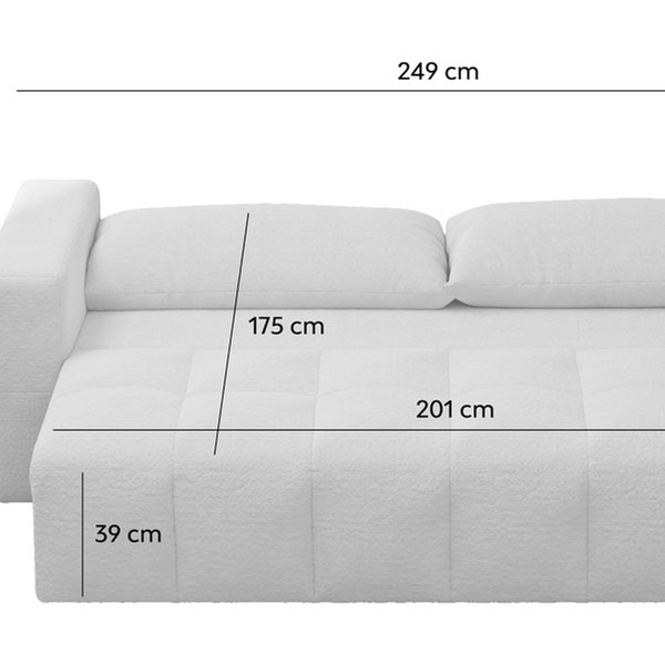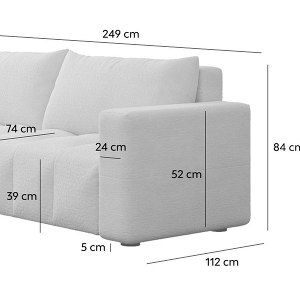 - Dimensions du canapé (L x P x h) : 249 x 112 x 84 cm