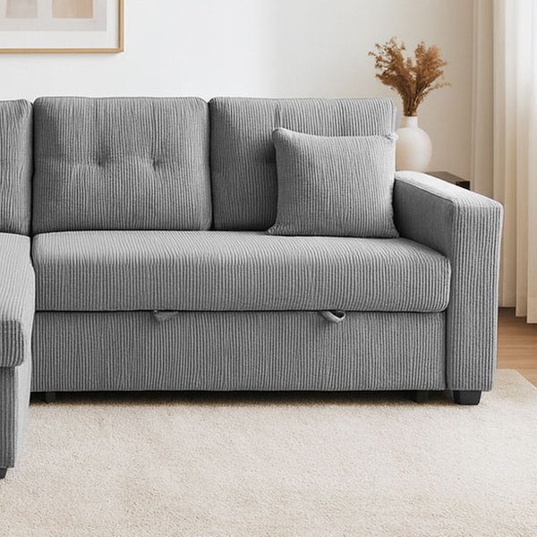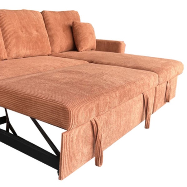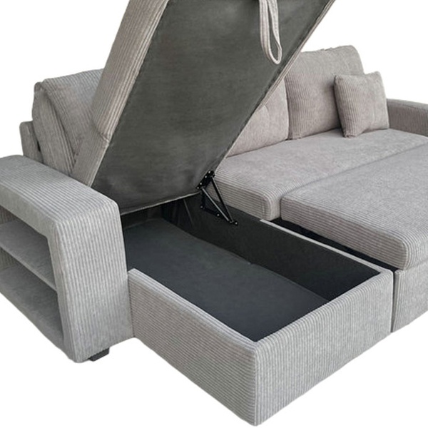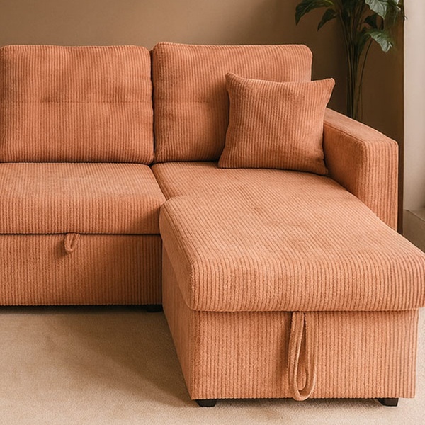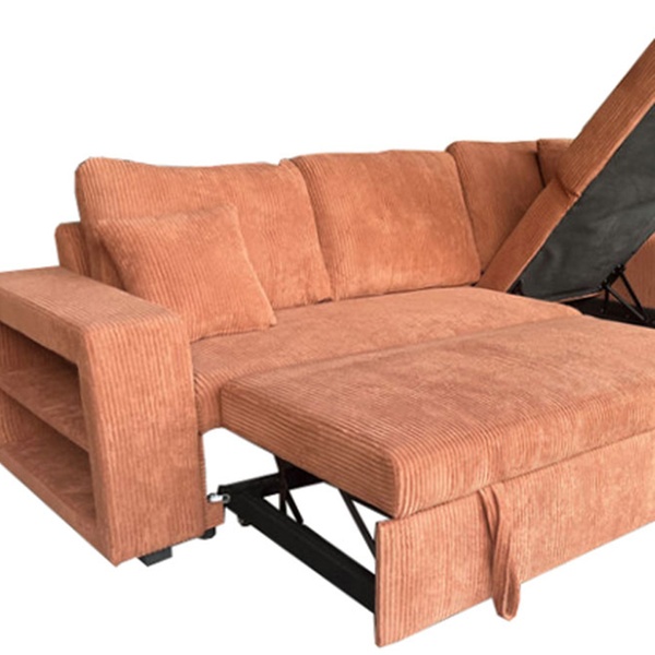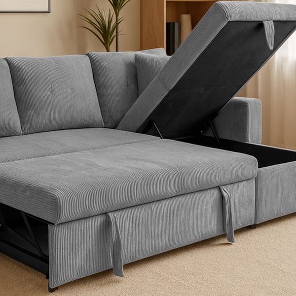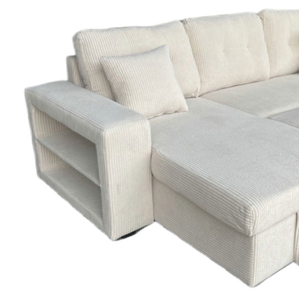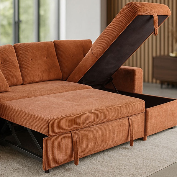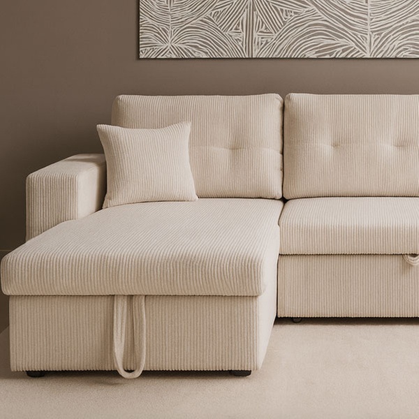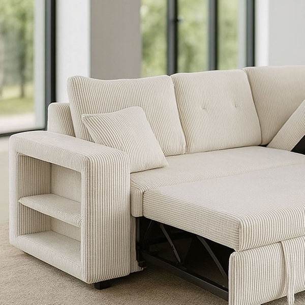 Véritable caméléon, ce canapé est entièrement réversible pour s'adapter à la configuration de votre pièce. Derrière son assise généreuse se trouvent un couchage d'appoint pour vos invités, un coffre de rangement volumineux et même des étagères intégrées dans l'accoudoir pour vos lectures du moment.
