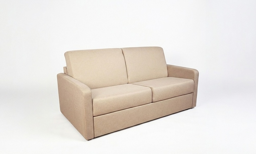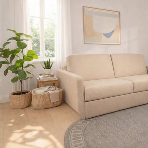 Canapé convertible compact et élégant avec matelas 140 x 200 cm en mousse HD, offrant un vrai confort de couchage et un gain de place au quotidien.