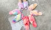 Des chaussons pour toujours se sentir féminine avec de la fausse fourrure multicolore effet tie dye