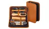 Kit de voyage cirage et brossage : 7 pièces dans étui en cuir