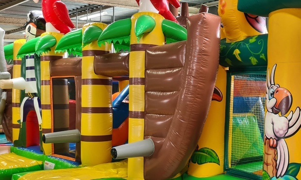 Installations et jeux proposés : piste de kart F1 électrique, terrain de foot synthétique, trampoline, structures gonflables réparties sur deux étages en intérieur et mini-golf en extérieur