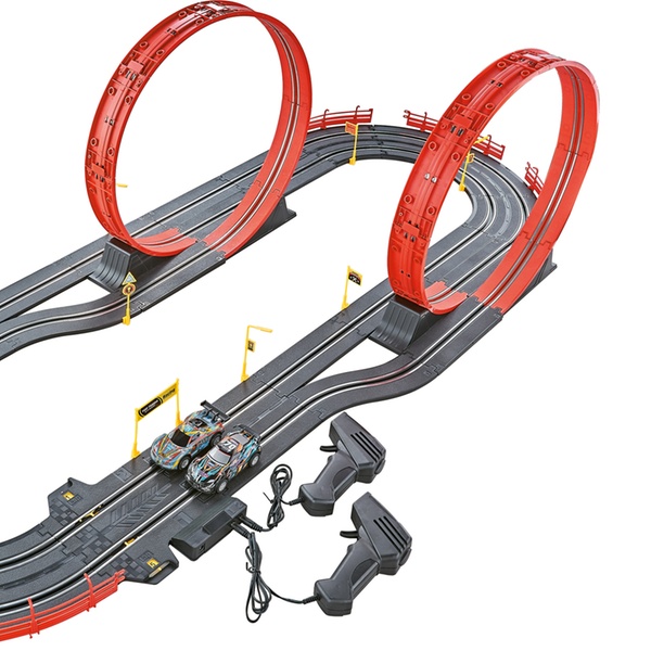 Préparez-vous pour la course de votre vie. Construisez l'un des trois circuits possibles, positionnez vos deux voitures et défiez vos amis sur des loopings renversants.