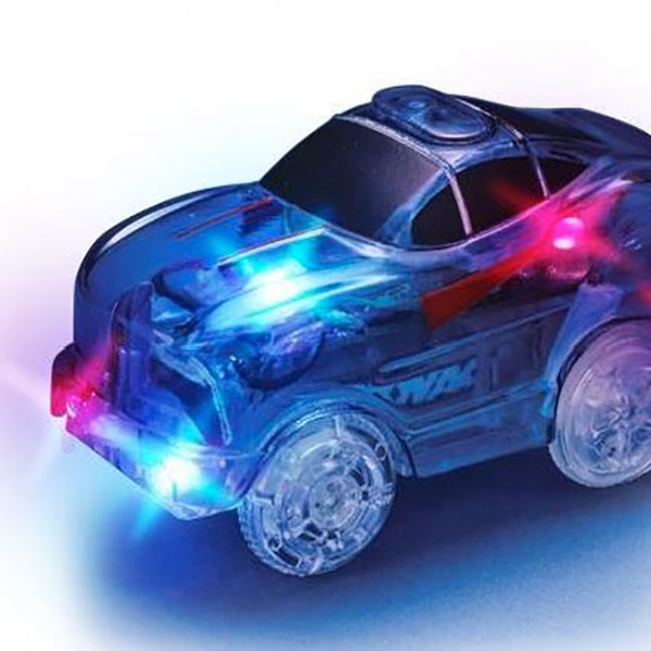 - La voiture de course est dotée de LED qui s’illuminent sur le circuit