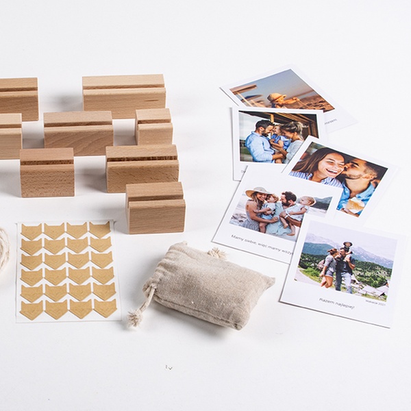 - Option 4 : Gadgets mini-kit - un ensemble d'accessoires comprenant de la ficelle, des pinces, des coins photo et des cubes autocollants pour une décoration créative.