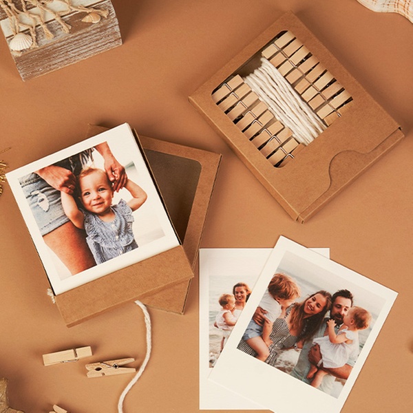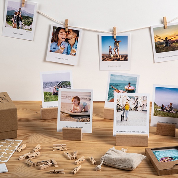 - Option 2 : Boîte memo prints (25 tirages) et gadgets mini-kit - un ensemble comprenant des tirages rétro et un mini set d'accessoires pour une décoration originale.