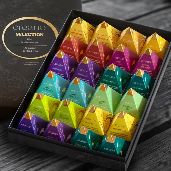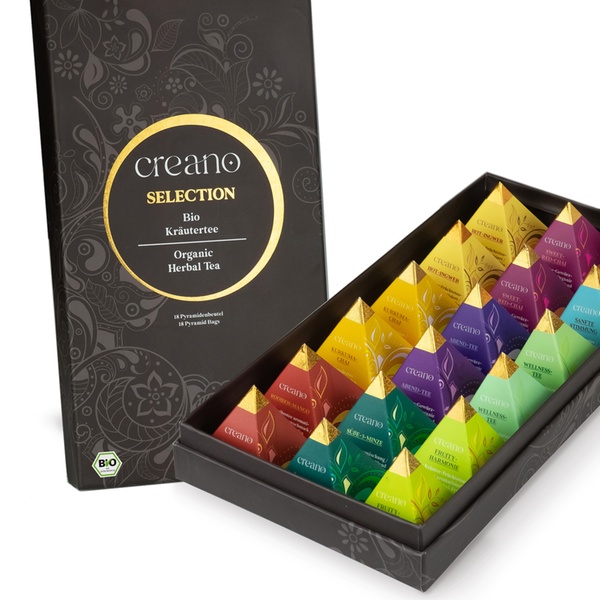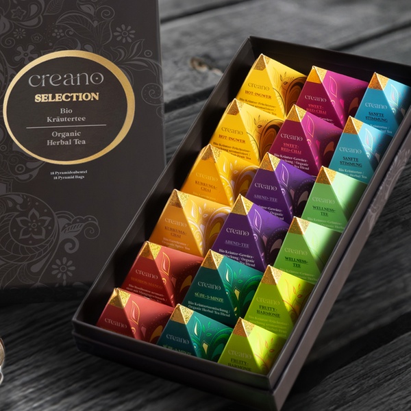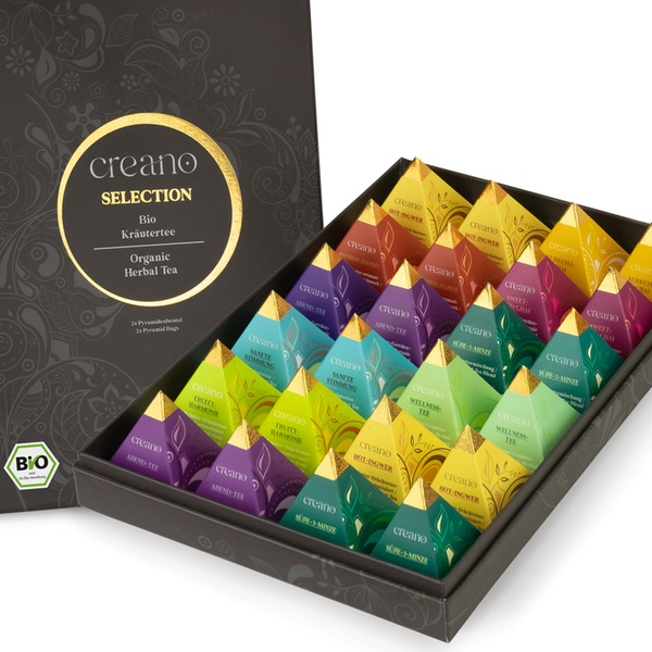 Coffret-cadeau de 18 ou 24 tisanes bio Creano composé de 9 variétés aromatiques