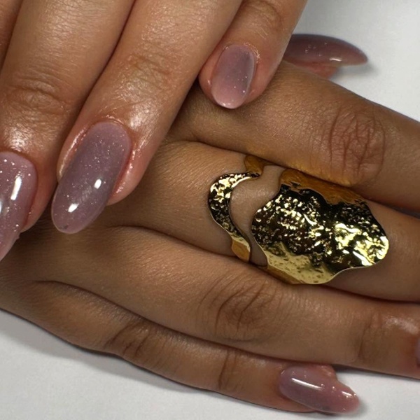 Le gainage de l’ongle est une technique de renforcement de l’ongle naturel, réalisée à l'aide d'une base spécifique (telle que la rubber base ou un gel léger), sans allongement. Ce renfort est suivi de l’application d’un vernis semi-permanent pour une finition brillante, nette et durable.