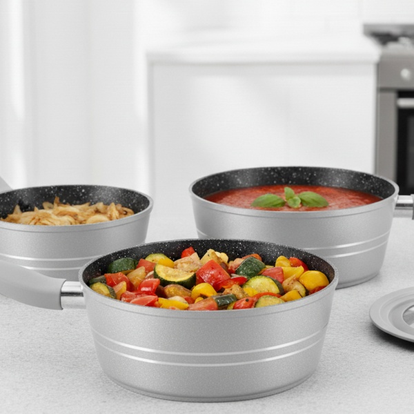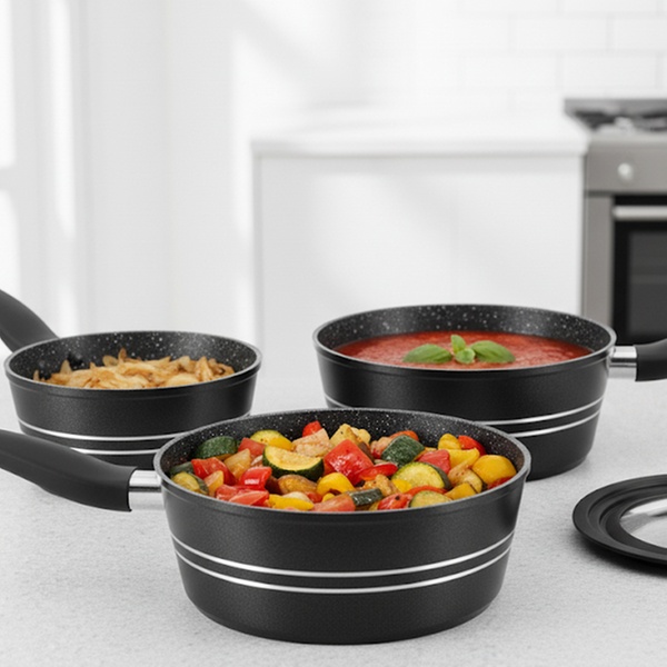 Cet ensemble de casseroles en noir avec couvercles en verre allie élégance et fonctionnalité, parfait pour toutes vos créations culinaires.