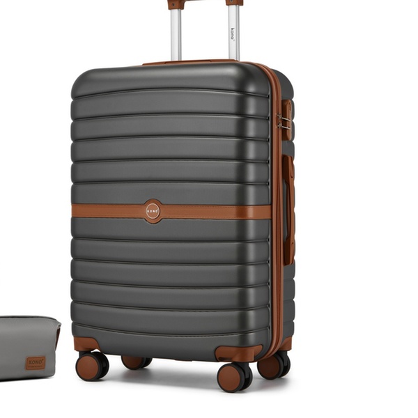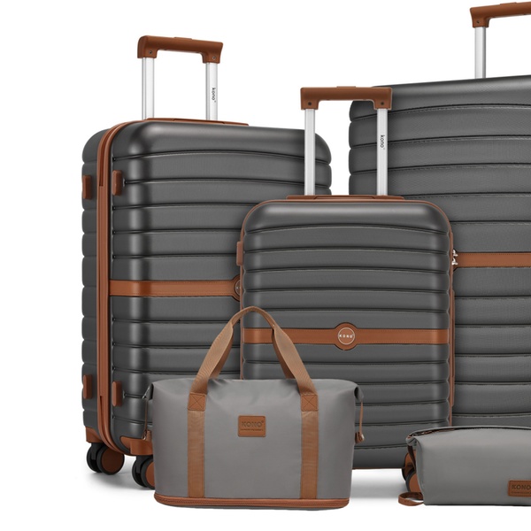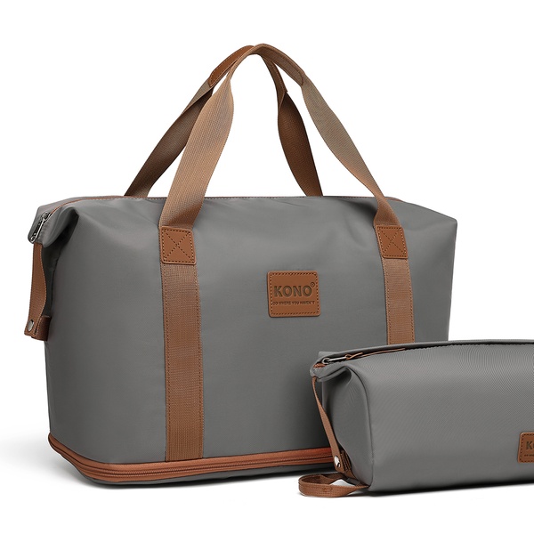 - Ensemble valise, sac de voyage et pochette gris et marron