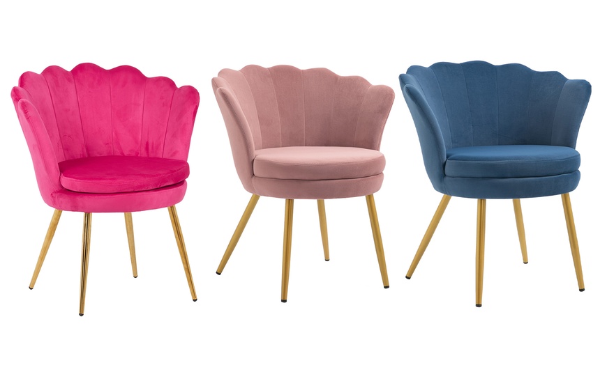 Ajoutez une note de glamour à votre intérieur avec le fauteuil Maddina. Son design en forme de coquillage et ses pieds en métal doré en font une pièce maîtresse élégante et moderne.