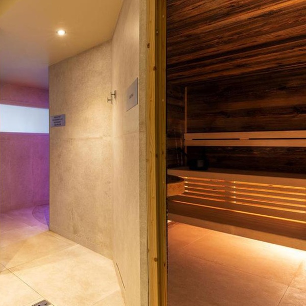 Espace bien-être complet composé d’un sauna, d'un hammam, douche, bassin sensoriel