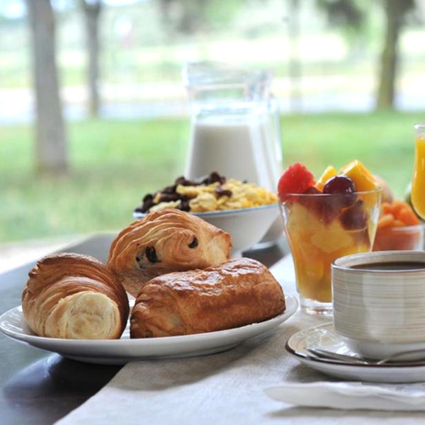 - Petit-déjeuner (servi en buffet de 7h à 10h tous les jours, composé de boisson chaude au choix, croissant, pain, beurre, confiture, compote, céréales, yaourts, fruits secs etc.)