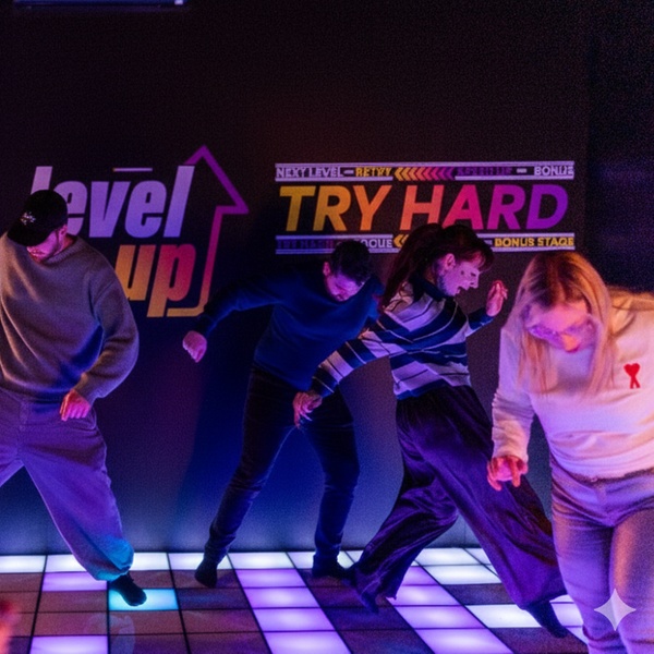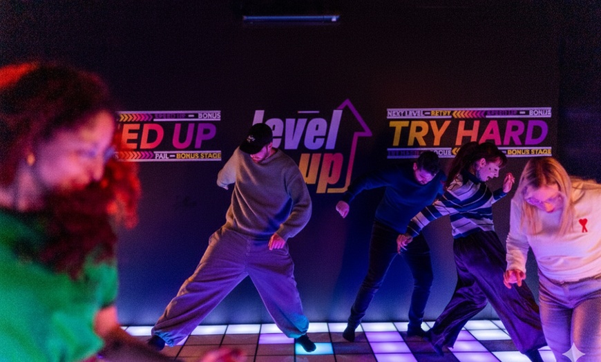 Level Up : entrez dans une salle dont le sol est entièrement composé de dalles lumineuses et interactives. Le jeu réagit à chacun de vos mouvements. Testez votre endurance, vos réflexes et votre logique en tentant d'atteindre les niveaux les plus élevés en 20 minutes chrono.
