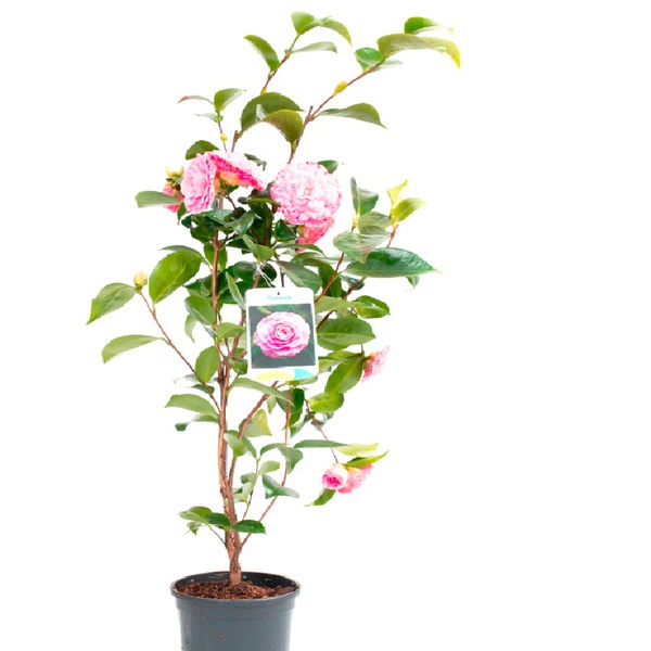 • Camellia « Rose du Japon » XL Tricolore (Rose/Rouge/Blanc) Un véritable coup d’œil : un arbuste aux fleurs multicolores pour un effet spectaculaire.