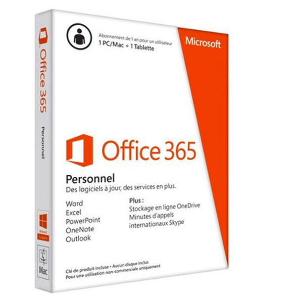Office 365 Personnel vise à proposer le meilleur des logiciels et services Office dans le Cloud, logiciels Office (Excel, Word, PowerPoint, OneNote, Outlook, Access, Publisher) disponibles dans leurs versions les plus récentes sur 1 PC ou Mac, tablette (Windows ou iPad) et smartphone (incluant les téléphones Android et iPhone).