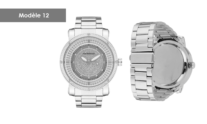 - Couleur : Boitier métal couleur acier incrusté de zircons