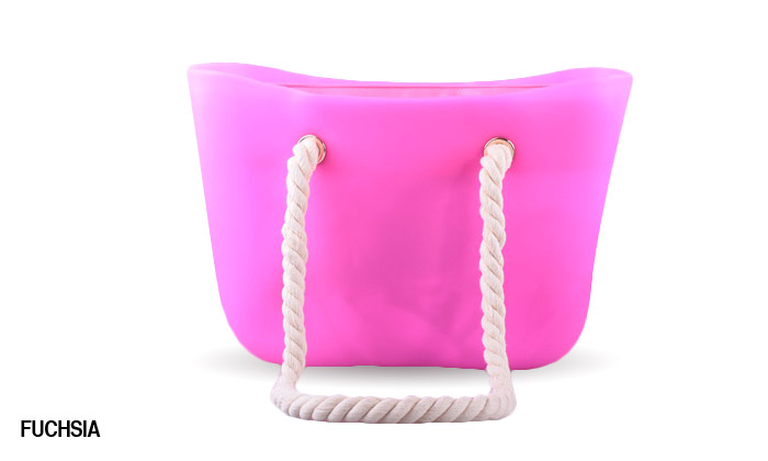 Ce sac cabas de plage ou de ville en silicone, conçu pour être porté à l'épaule ou au bras, est disponible en 8 coloris variés