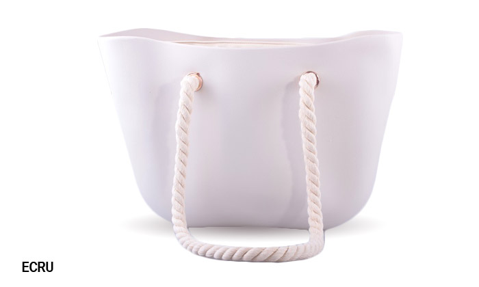 Ce sac cabas en silicone, doté de deux grosses cordes tressées en guise de anses, a été conçu pour être porté à l’épaule ou au bras. Ce sac disponible en 8 couleurs vise à pouvoir être porté tout l’été à la plage comme à la ville.