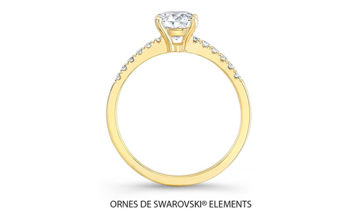 Cette parure Luxury Crystal In est composée d’un solitaire, d’une alliance et en option d’un bracelet, ornés de cristaux Swarovski® Elements