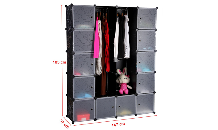 Les éléments se clipsent les uns les autres avec des connecteurs en plastique noir. Les portes peuvent s’enlever ou se rajouter.