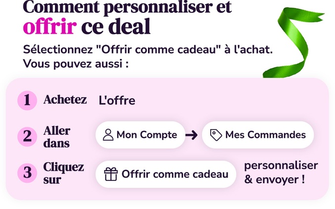 À la recherche du cadeau idéal pour surprendre vos proches ou vos amis ? Ne cherchez pas plus loin ! Groupon vous offre une opportunité exclusive de leur offrir le luxe du choix. Grâce à notre carte-cadeau Groupon France Santé & Beauté, vos proches partiront pour un voyage de découverte et de plaisir, en sélectionnant parmi une large gamme de produits exceptionnels, d'expériences mémorables, et même d'escapades de rêve pour des vacances !