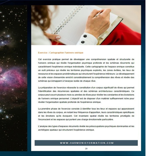 Avec des exercices pratiques, des exemples concrets et une pédagogie progressive, vous apprendrez à décoder vos rêves de manière claire et applicable dès les premiers modules. Au fil du parcours, vous gagnerez clarté, sérénité et confiance, et vos nuits deviendront une véritable boussole intérieure.