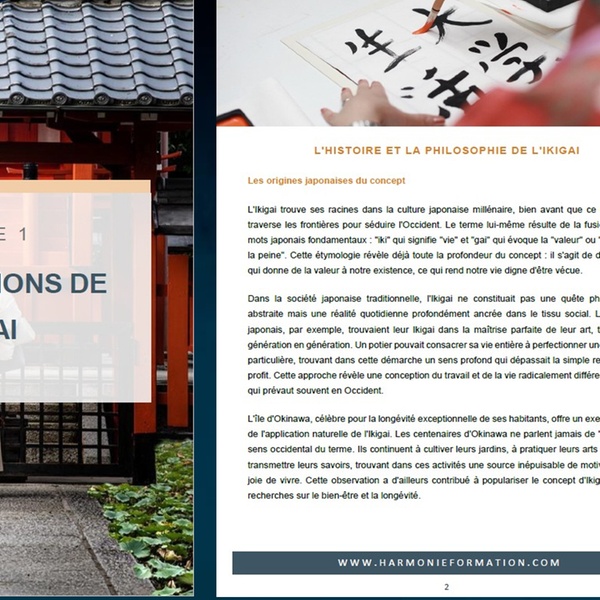 Harmonie Formation a conçu un programme accessible, vivant et immédiatement applicable. Les modules alternent savoirs théoriques, exercices, introspections et mises en situation pour intégrer l’Ikigai dans votre vie et votre pratique professionnelle.