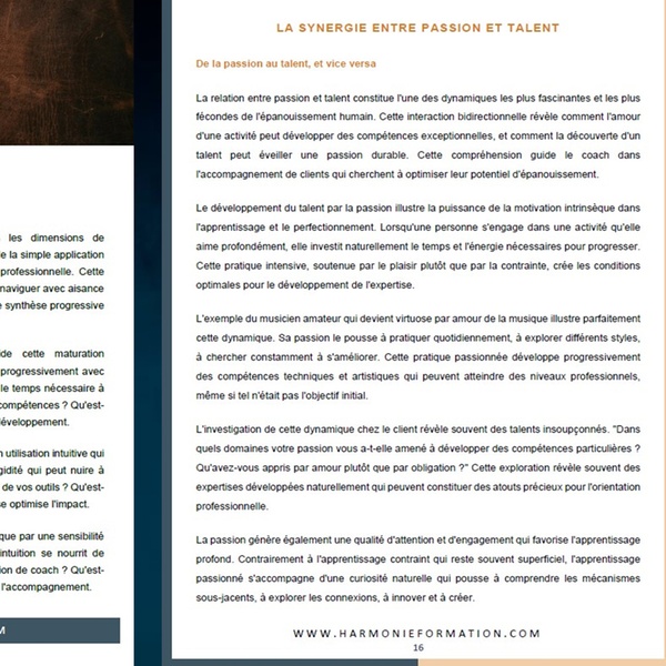 - Révélation personnelle : identification de vos talents, valeurs, passions et mission