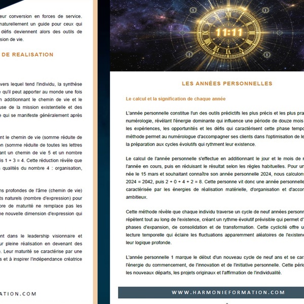 Avec un thème numérologique complet, vous pourrez accompagner avec bienveillance vos proches ou clients. Le programme est conçu pour être suivi à votre rythme, avec une pédagogie claire et sans jargon compliqué.