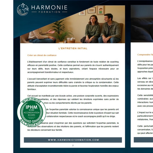 Accessible à tous et 100 % en ligne, ce parcours signé Harmonie Formation vous guide pas à pas vers une parentalité apaisée et bienveillante. Une approche concrète, humaine et certifiante pour grandir ensemble, parents et enfants.