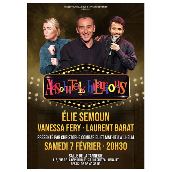 Choisir le plateau d'humour Absolutely Hilarious, c'est l'assurance de voir une icône du rire, Elie Semoun, au sommet de son art, tout en découvrant les étoiles montantes de la comédie, Vanessa Fery et Laurent Barat. Fort de ses 30 ans de carrière, Elie Semoun excelle à transporter son public dans des univers déjantés et inattendus, un talent que l'on ne présente plus. Le show se déroule dans la charmante Salle de la Tannerie de Château-Renault, promettant une proximité et une ambiance chaleureuse. C'est l'opportunité parfaite de s'offrir un divertissement de haute qualité à un prix avantageux, idéal pour un couple, des amis ou une sortie en famille. Ne manquez pas cette combinaison rare d'humour culte et de nouvelle génération.