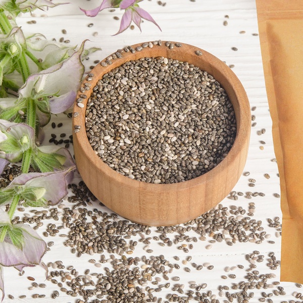 Riche en oméga-3, les graines de chia s’ajoutent à un yogourt, avoine, céréales ou salades pour un repas sain et nutritif