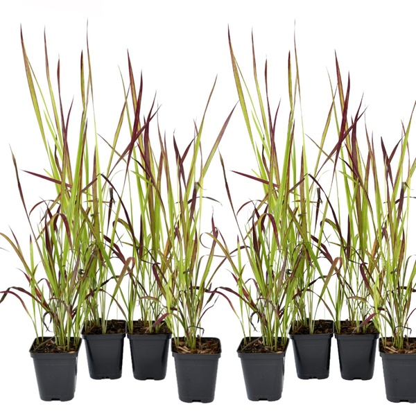 Ajoutez une texture élégante et des accents de couleur rouge intense à votre jardin avec ce set de graminées décoratives japonaises.