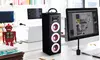 • 3 enceintes de 3 watts de 7,5 cm chacune • Port USB • Porte SD et micro SD (avec adaptateur) • Carte TF • Subwoofer • Radio FM • Microphone inclus
