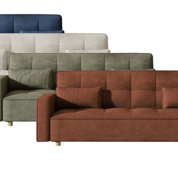 Ce canapé convertible arbore un chic revêtement en velours côtelé ou en tissu, offrant style et confort pour toutes les occasions.