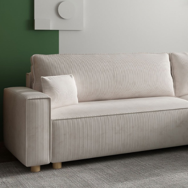 Ce canapé convertible en velours côtelé combine élégance et confort, offrant un lit d'appoint pratique pour les invités.