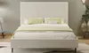 - Lit bouclette beige avec tête de lit et sommier