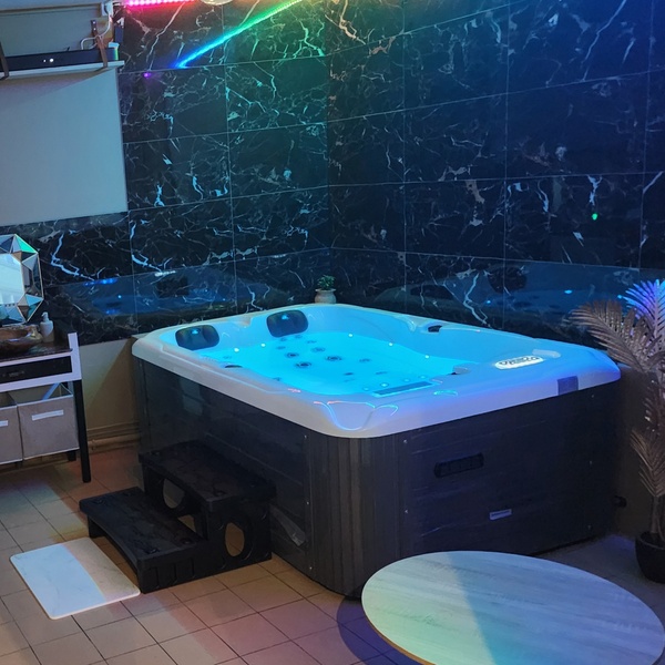 *Besoin d’une pause à deux, loin du tumulte du quotidien ? Offrez-vous une bulle de sérénité et plongez dans un univers de détente absolue. Dans un espace privatif élégant, laissez-vous bercer par les bulles d’un bain à remous à deux places avec allonges massantes, le tout accompagné de boissons rafraîchissantes et d’une atmosphère feutrée. L’expérience parfaite pour se ressourcer en couple, se relaxer et simplement savourer l’instant présent.