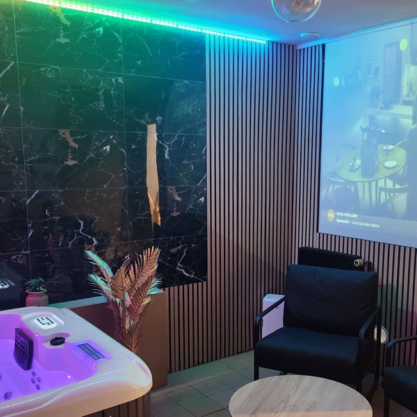 Un spa entièrement privatisé avec bain à remous, salon cosy et boissons pour une détente à deux à Bully-les-mines.