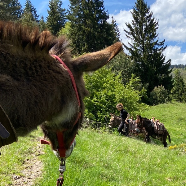 - Déroulé de l'activité : un professionnel procède à un briefing avant le début de la randonnée. Après cette intervention, une carte avec un circuit à effectuer en autonomie avec son âne sera fournie. L'âne est équipé d'un bât pour porter les affaires de randonnée.