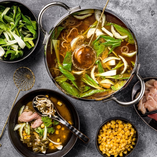 La Fondue Chinoise, ou Hot Pot, est bien plus qu'un simple repas ; c'est une tradition culinaire chinoise profondément conviviale qui met l'accent sur le partage et les saveurs. Le cœur de l'expérience réside dans le grand bouillon parfumé, maintenu bouillant au centre de la table, dans lequel chaque convive cuit individuellement une variété d'ingrédients crus, allant de fines tranches de bœuf et de poulet aux fruits de mer frais, en passant par divers légumes et nouilles. Une fois les aliments cuits, ils sont trempés dans des sauces personnalisées — souvent à base de sésame, d'ail, de coriandre ou de piment — qui permettent à chacun d'ajuster l'intensité et les saveurs de son assiette.