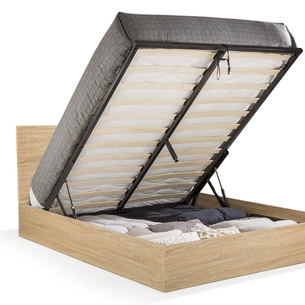 Ce lit aux lignes épurées et pratique avec son coffre, saura parfaitement s’intégrer à tout intérieur avec ses lignes simples et élégantes